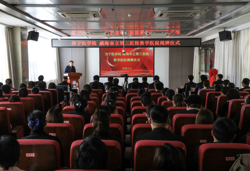 在威海期间,李栋一行出席了威海市立第三医院“济宁医学院教学医院”揭牌仪式。仪式上,王文姮与威海市立第三医院院长马桂珍共同为教学医院揭牌。